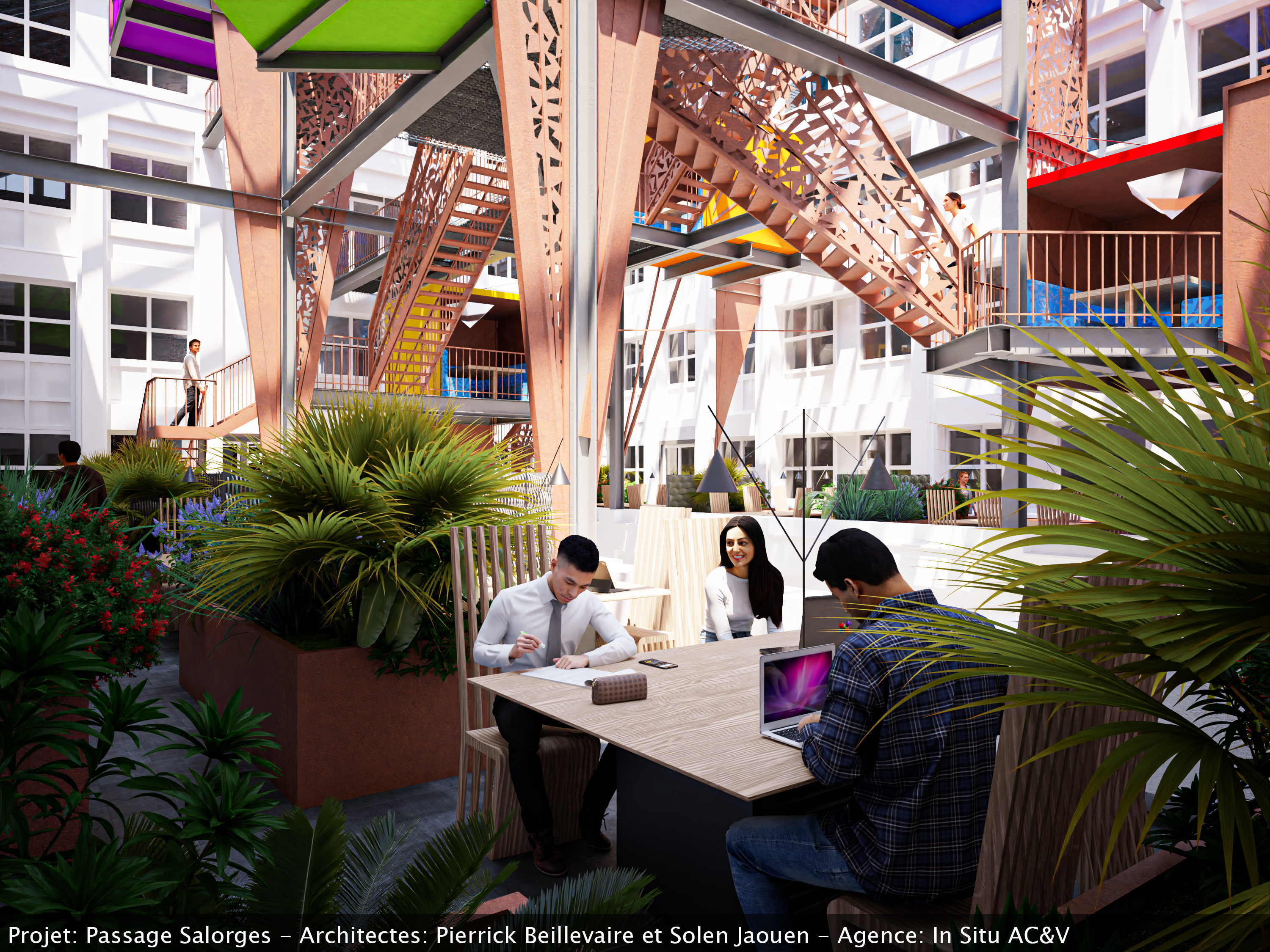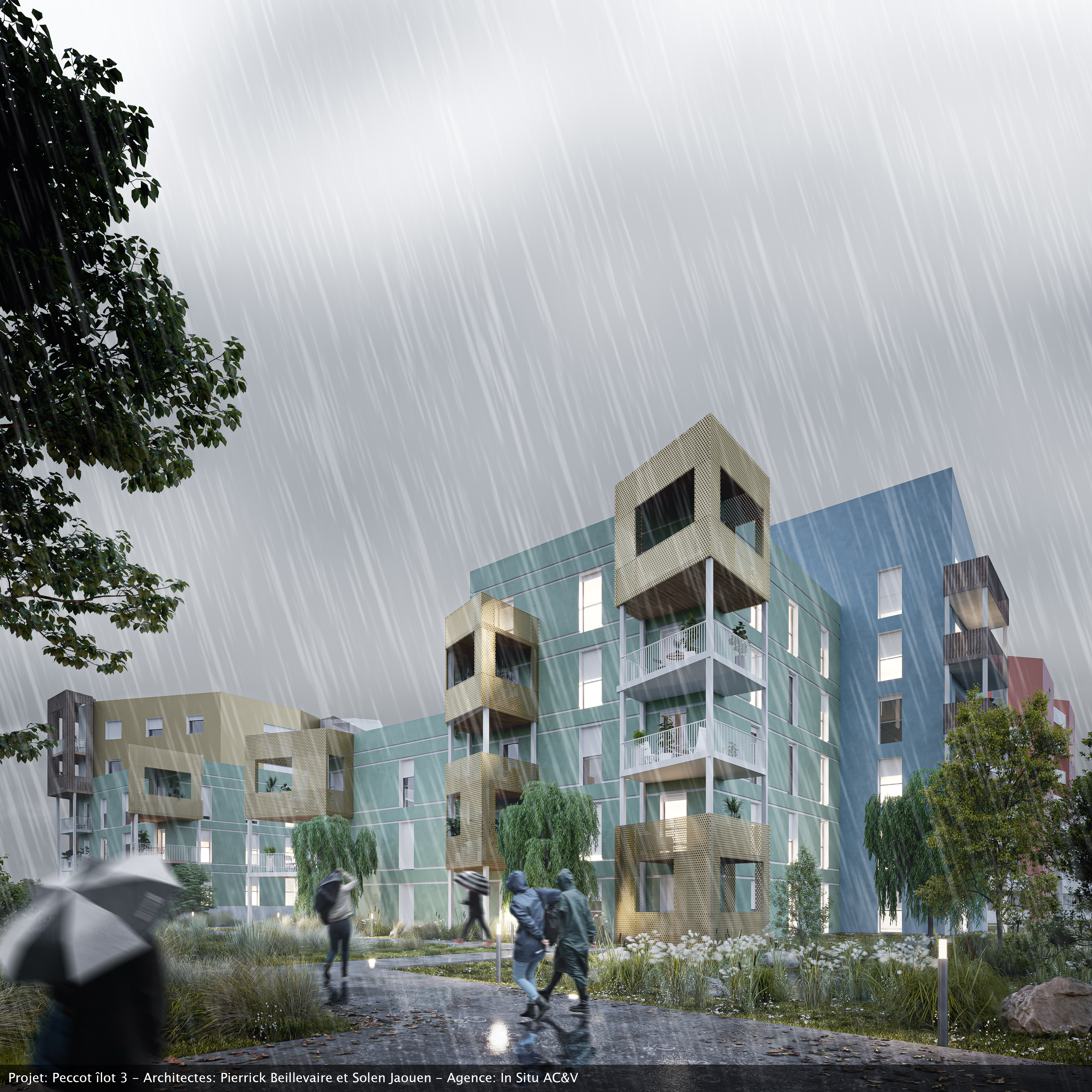 Elle offre une vue réaliste d’un projet architectural depuis l’extérieur, montrant le bâtiment dans son environnement avec ses détails. Elle permet une communication efficace et une visualisation réaliste.